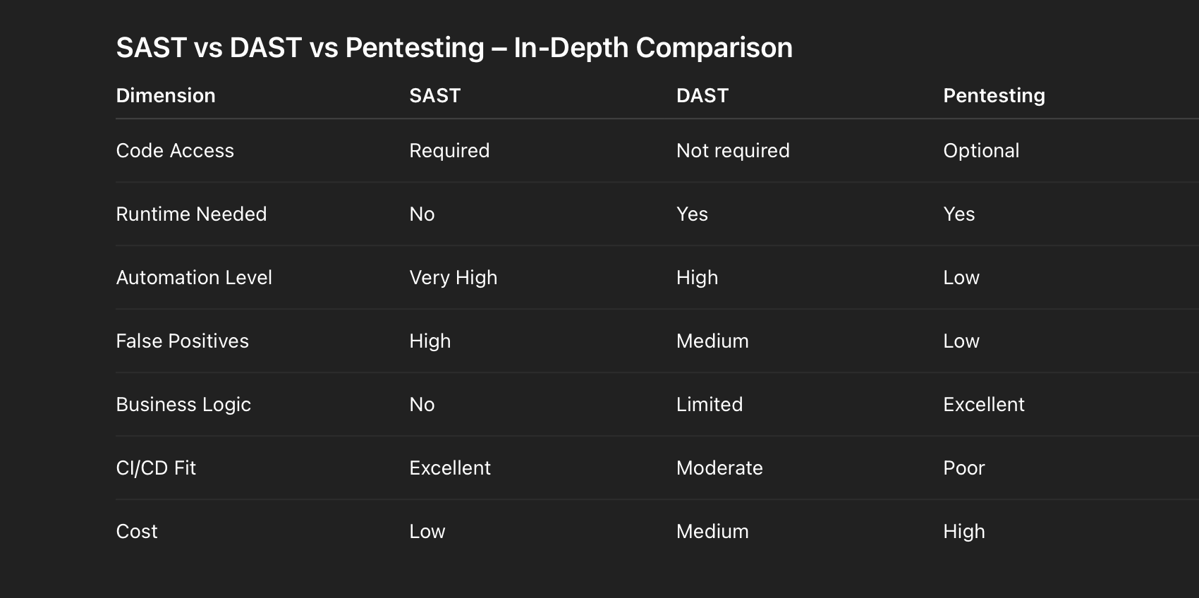 SAST, DAST, and Penetration Testing are not alternatives—they are layers of defense.